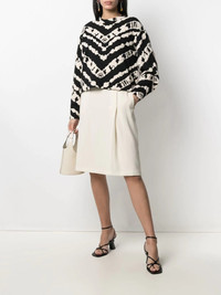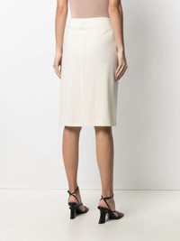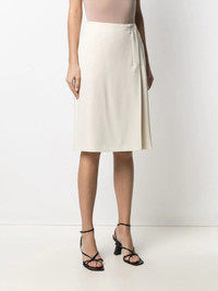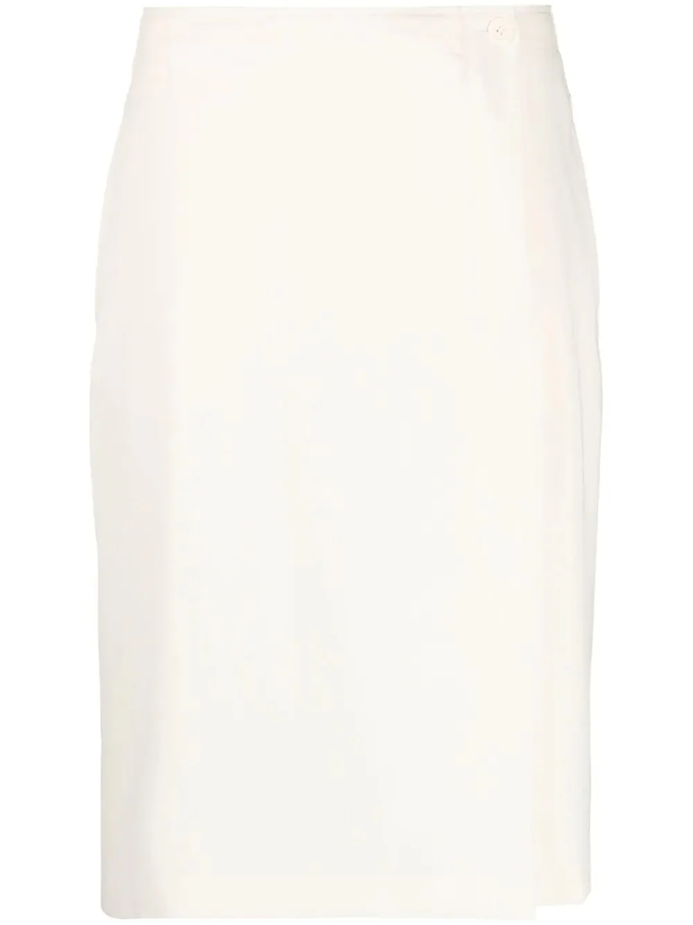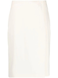 wrap-front midi skirt ivory wraparound style side tie fastening knee-length Made in Italy Composition Outer: Triacetate 70%, Polyester 30% Lining: Cupro 94%, Spandex/Elastane 6% SIZE & FIT Model measurements Height 5 ft 10 in(1.78 m) Bust/Chest 33.07 in(84 cm) Hips 35.82 in(91 cm) Waist 25.98 in(66 cm) FittingInformation This piece fits true to size. We recommend you get your regular size Cut for a slim fit Made with a mid-weight non-stretch fabric Washing instructions Dry Clean Only