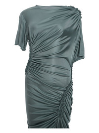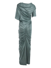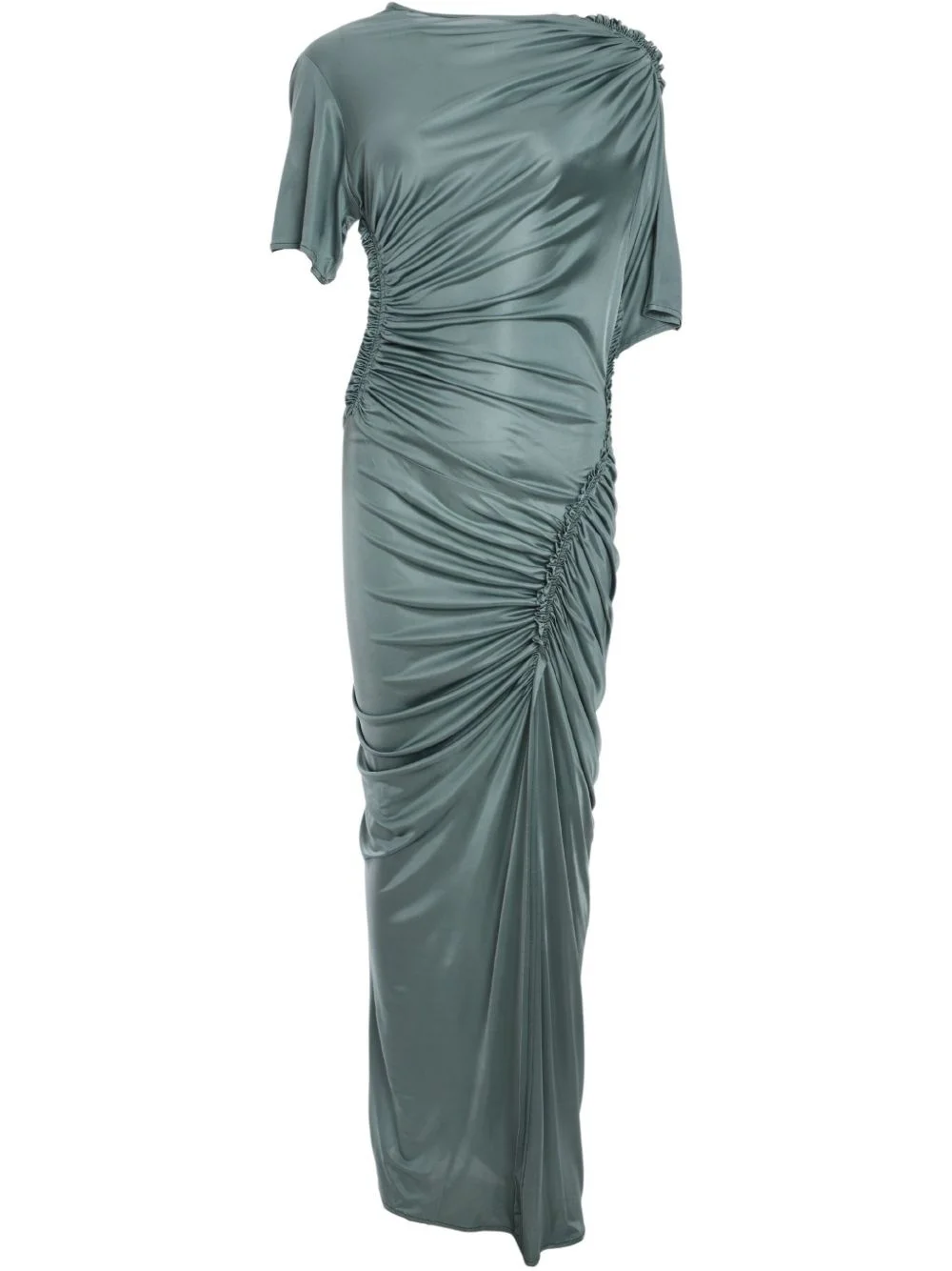 asymmetric ruched midi dress Highlights - Emerald green - Short sleeves - Draped design - Floor-length - Asymmetric design Made in France Composition Viscose 100% Washing instructions Read Manufacturer Guidelines
