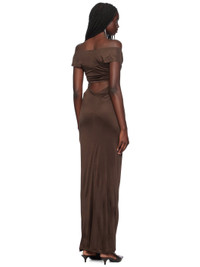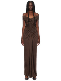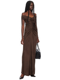 Viscose jersey dress. Ruching throughout. · Off-the-shoulder construction · Cutout at waist Supplier color: Terre 100% viscose. Made in France 242302F055014