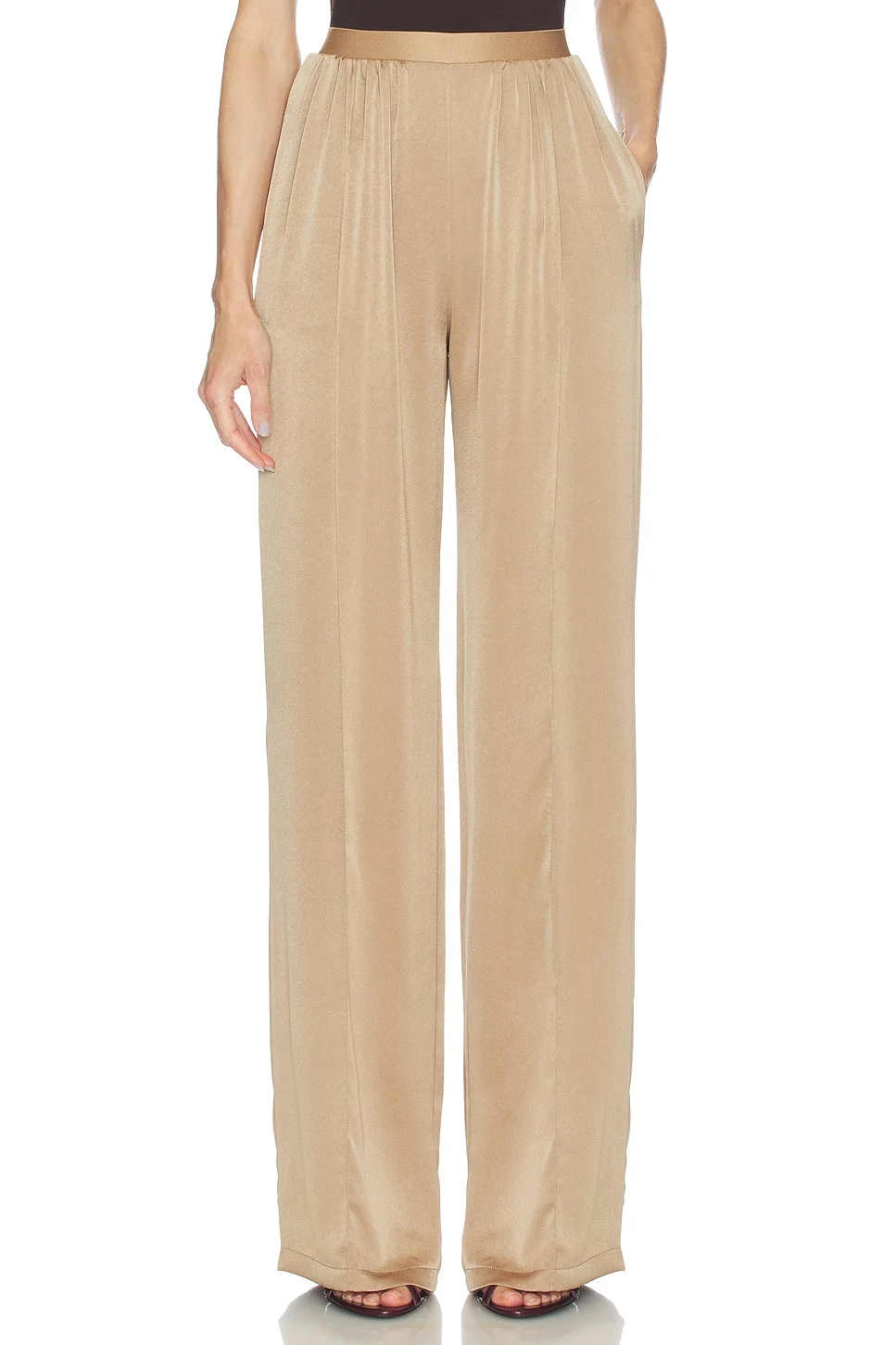 - 80% triacetate 20% polyester - Made in Italy - Dry clean - Pull-on styling - Lightweight satin crepe fabric - Elastic waistband - Dual side seam pockets.22" at the leg opening - Revolve Style No. ATLR-WP3 - Manufacturer Style No. PC01 TC12
