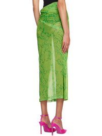 Semi-sheer polyester mesh skirt. · Graphic pattern printed throughout. · Knot detailing at asymmetric waist Supplier color: Snake green 100% polyester. Made in France 231302F092005