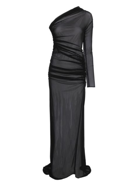 metallic draped gown Highlights - Silver - Metallic finish - Draped design - One-shoulder - Single long sleeve - Asymmetric hem - Floor-length Made in France Composition Viscose 100% Washing instructions Dry Clean Only