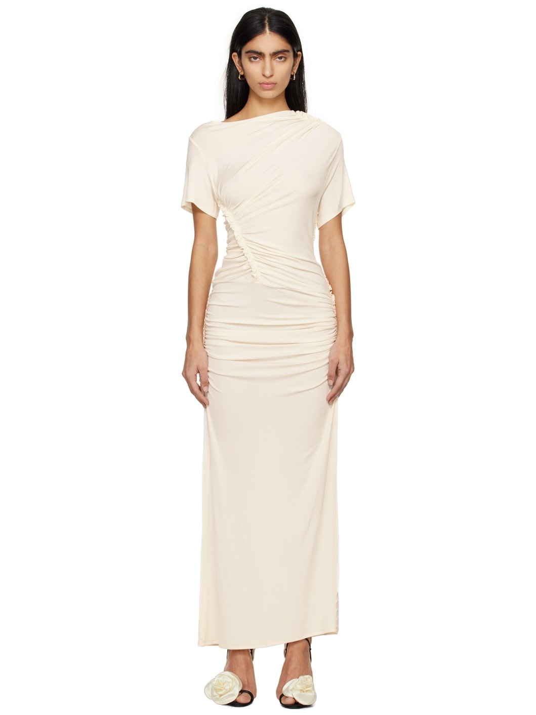Off-White Ruched Midi Dress