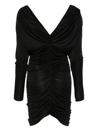 satin midi dress Highlights - Black - Ruched detailing - V-neck - Long sleeves Made in France Composition Polyamide 100% Washing instructions Dry Clean Only