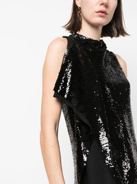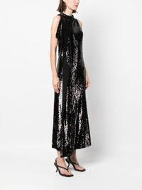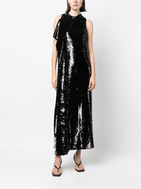 sequinned asymmetric drape maxi dress black sequin embellishment draped detailing asymmetric design round neck sleeveless concealed rear zip fastening shift style Made in France Composition Outer: Polyester 100% Lining: Polyester 100% SIZE & FIT Model measurements Height 5 ft 10 in(1.78 m) Bust/Chest 33.46 in(85 cm) Hips 36.22 in(92 cm) Waist 23.22 in(59 cm) FittingInformation This piece fits true to size. We recommend you get your regular size Designed for a close fit at the bust, waist and hips Made with a mid-weight non-stretch fabric Washing instructions Dry Clean Only