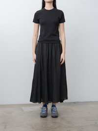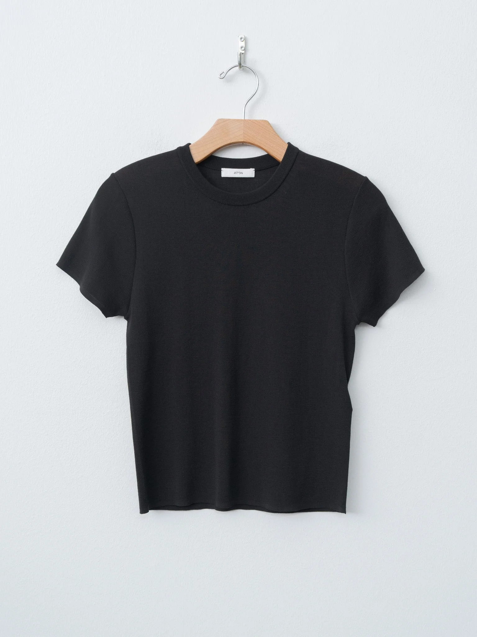 This fitted tee is made from a smooth, lightweight cotton jersey with a compact rib structure that hugs the body without feeling restrictive. Details include a crewneck, clean edge seams, and a fitted silhouette with a regular length hem. - 100% Cotton - Available in Black - The model is 5'7"/170cm and wears size 2/M