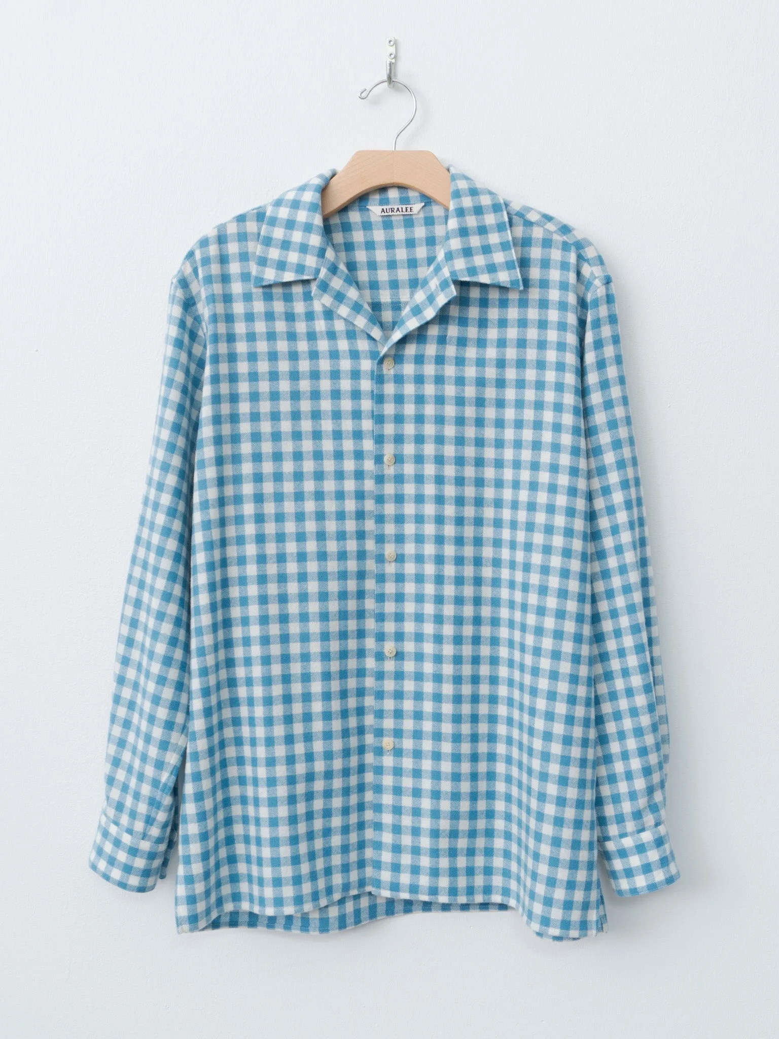 An overshirt crafted luxuriously from 100% cashmere. It features an airy softness, natural sheen and an exquisite feel against the skin. Other details include an open collar, buttoned front and cuffs, side split hem and side rear pleats. - Made in Japan - 100% Cashmere - Available in Light Blue Gingham Check - The model is 5'7" / 170 cm and wears size 1/S