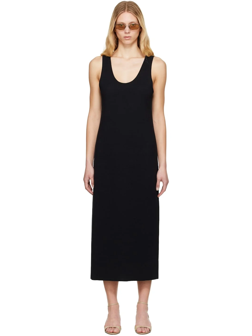 Double-faced knit stretch cotton-blend midi dress. · Scoop neck · Slit at back hem · Unlined Supplier color: Black 46% cotton, 27% rayon, 12% silk, 10% polyester, 4% nylon, 1% polyurethane. Made in Japan 252484F054001