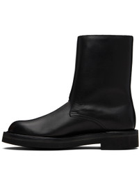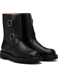 Mid-calf buffed calfskin boots. · Pin-buckle tabs at outer side · Buffed calfskin lining · Textured rubber sole Supplier color: Black Upper: calfskin. Sole: rubber. Made in Japan 252484F113000