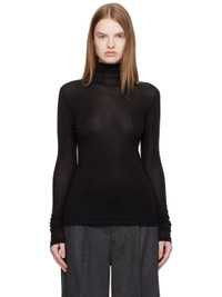 Black Super High Gauge Sheer Rib Turtleneck