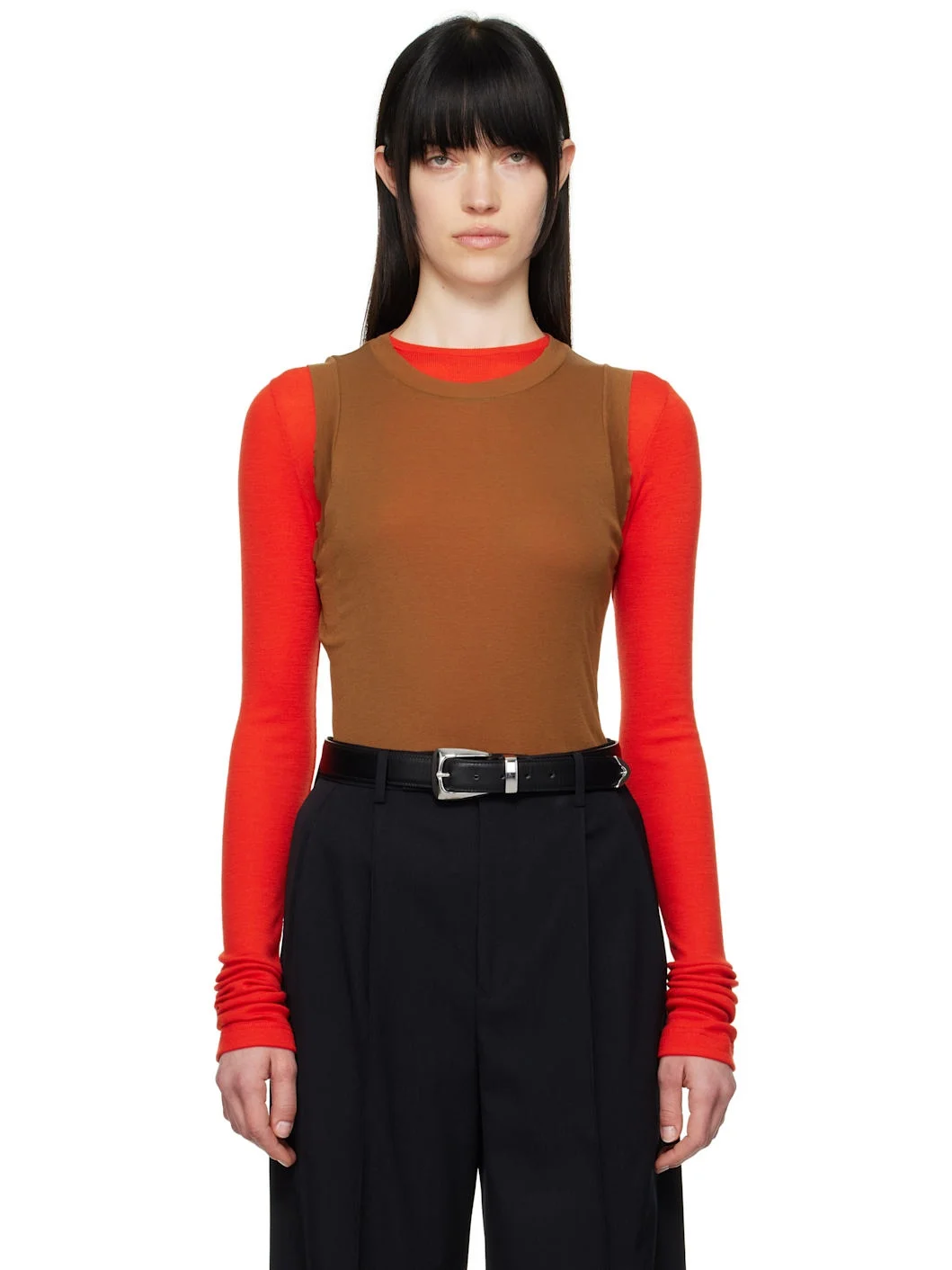 Semi-sheer extra-long staple cotton jersey tank top. · Slim-fit and lightweight · Raw edge at crewneck and armscyes Supplier color: Brown 100% cotton. Made in Japan 251484F111002