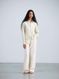 A premium cotton-silk stripe fabric woven at high density from finely spun Egyptian extra-long staple Giza cotton. The signature suppleness of Giza cotton is beautifully balanced with the smooth texture of silk, offering a luxurious feel that gently conforms to the skin. Its delicate, refined stripe pattern enhances the fabric's elegance, while the soft, sophisticated finish is truly exceptional. Regular fit Material COTTON 73% SILK 27%