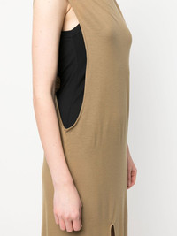 front-slit cut-out dress light brown wool cut-out detailing round neck front slit sleeveless Imported Composition Wool 100% SIZE & FIT Model measurements Height 5 ft 10 in(1.78 m) Bust/Chest 31.49 in(80 cm) Hips 36.22 in(92 cm) Waist 25.59 in(65 cm) FittingInformation This piece fits true to size. We recommend you get your regular size Cut for a slim fit Made with a mid-weight fabric