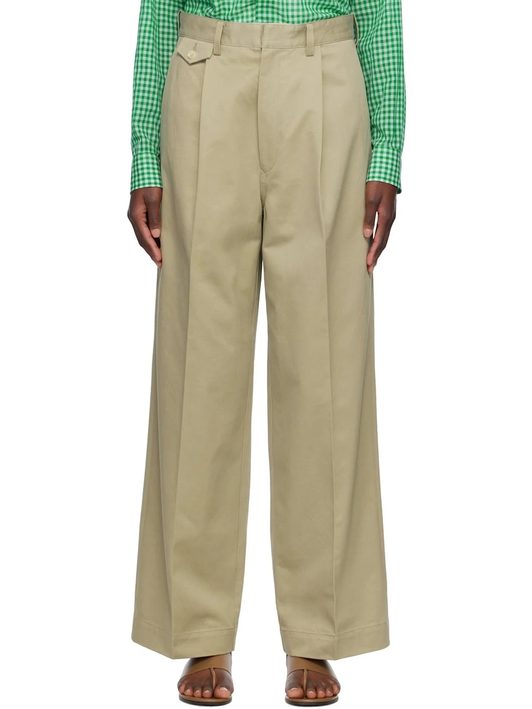 Wide-leg cotton twill trousers. · Belt loops · Five-pocket styling · Zip fly · Pleats at front · Creased legs Supplier color: Light khaki 100% cotton. Made in Japan 251484F087008