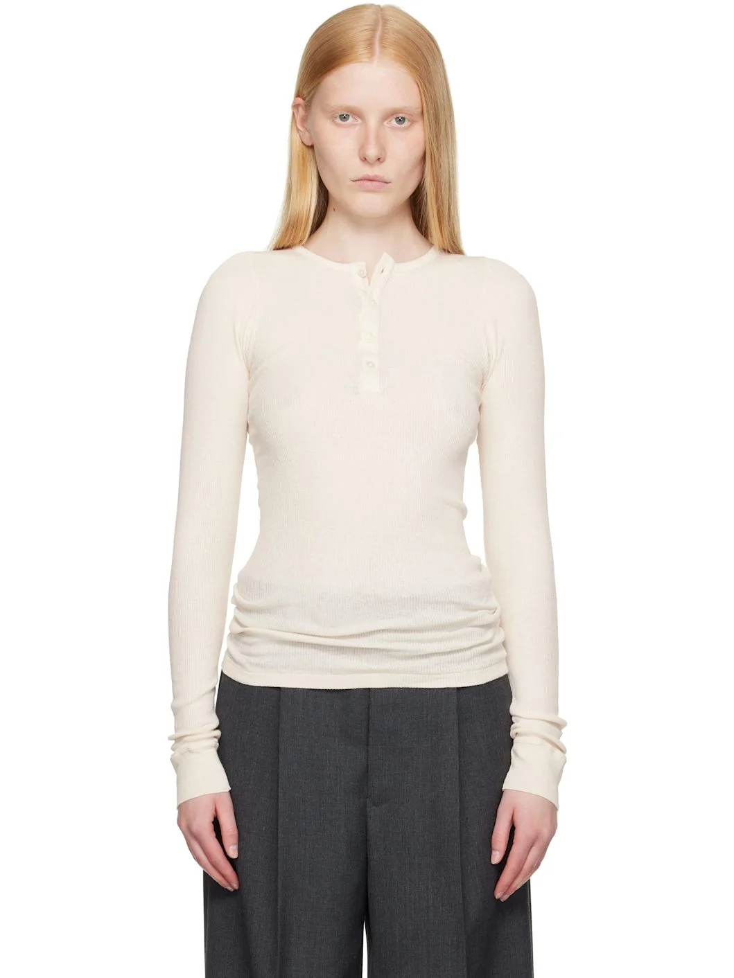 Organic cotton ribbed jersey henley. · Crewneck · Four-button placket Supplier color: Ivory 100% organic cotton. Made in Japan 252484F096000