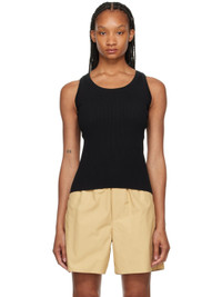 20 gauge rib knit giza cotton tank top. · Scoop neck · Droptail hem Supplier color: Black 100% cotton. Made in Japan 242484F111005