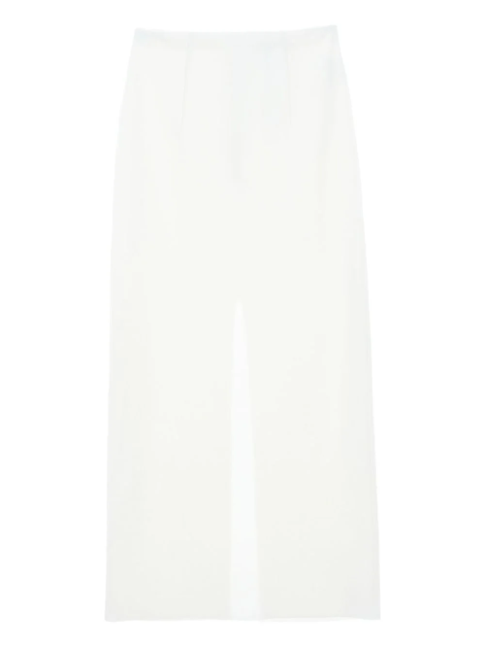 slit midi skirt Highlights - Off-white - Rear slit detail - Tailored pleats - High-waisted design Imported Composition Cotton 46%, Rayon 27%, Silk 12%, Polyester 10%, Nylon 4%, Polyurethane 1% Washing instructions Read Manufacturer Guidelines