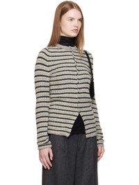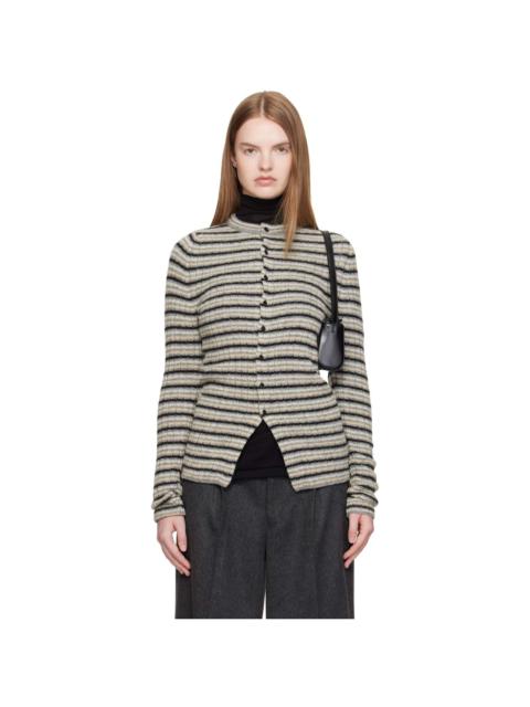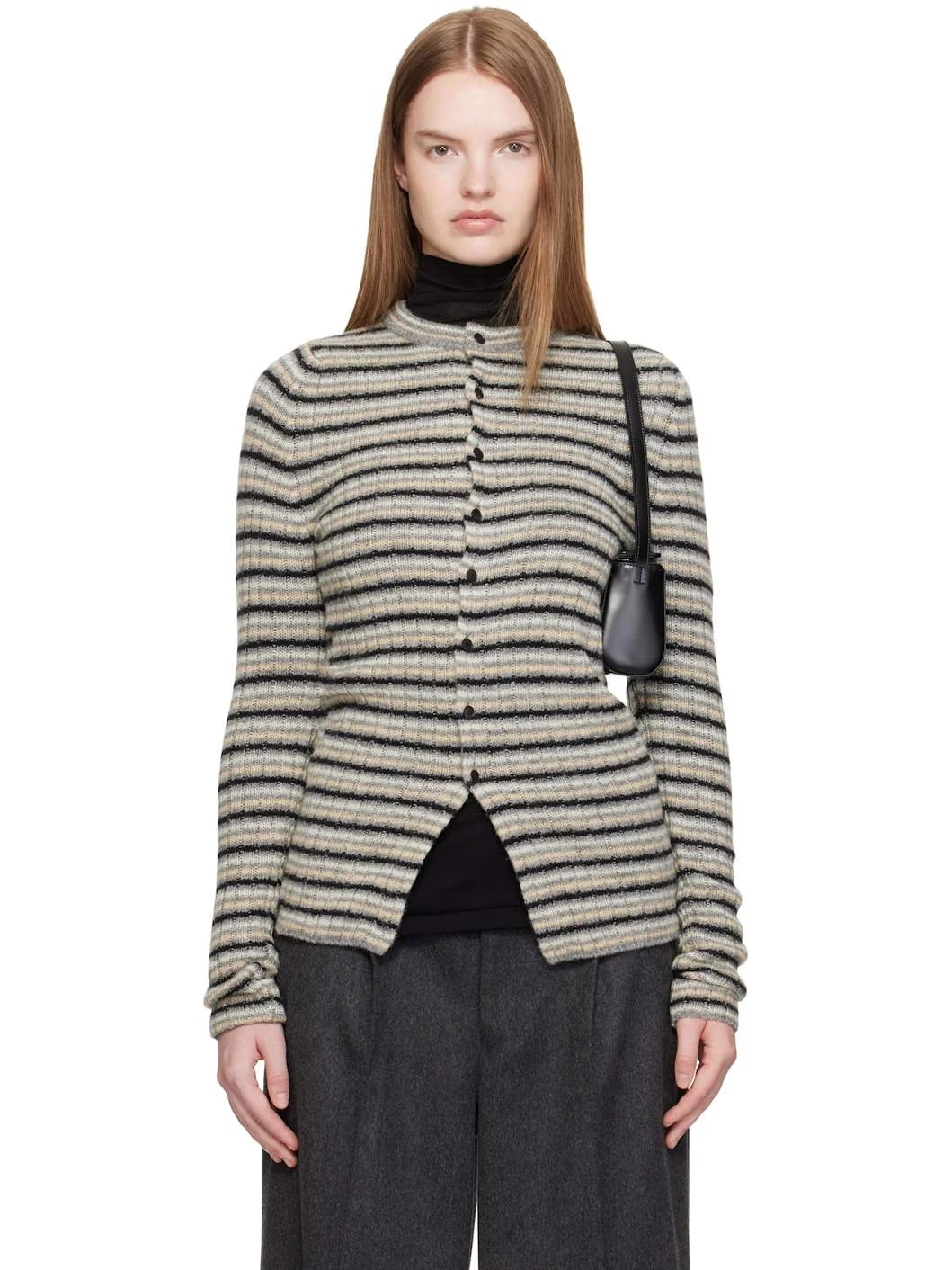 Brushed rib-knit Shetland wool- and cashmere-blend cardigan. · Crewneck · Button closure Supplier color: Gray stripe 62% wool, 38% cashmere. Made in Japan 252484F095008