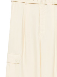 structured double cloth cargo pants Highlights - Ivory - Concealed front button, hook and zip fastening - Detachable waist belt - Two side cargo pockets Imported Composition Wool 100% Washing instructions Dry Clean Only