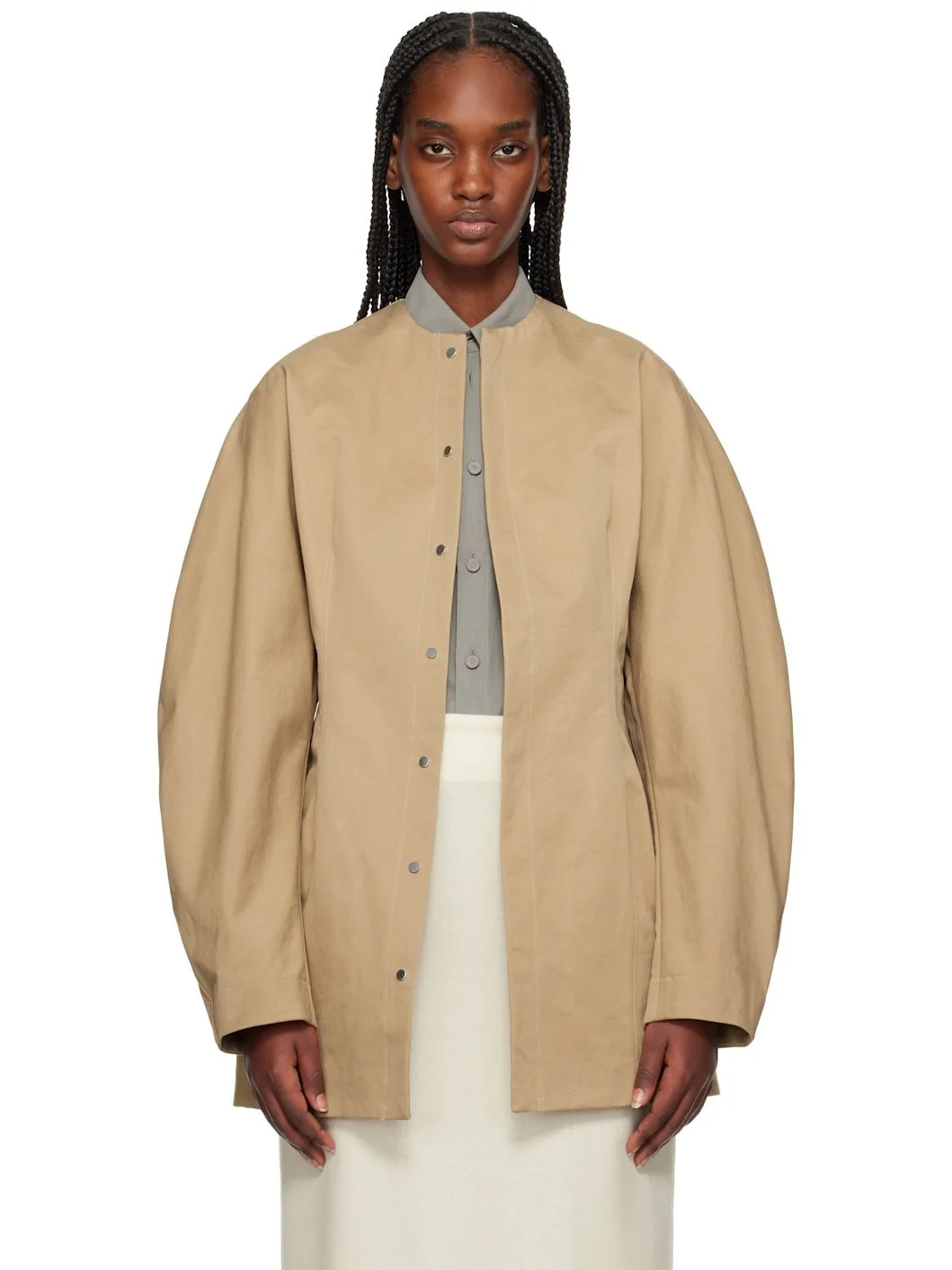 Cotton gabardine coat. · Round neck · Press-stud closure · Darts at waist · Seam pockets · Dolman sleeves Supplier color: Camel brown 100% cotton. Made in Japan 251484F059013