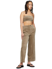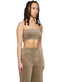 Strapless organic cotton velour bandeau-style camisole in taupe. · Elasticized collar and hem · Zip closure at back Supplier color: Light brown 100% organic cotton. Made in Japan 221484F111005