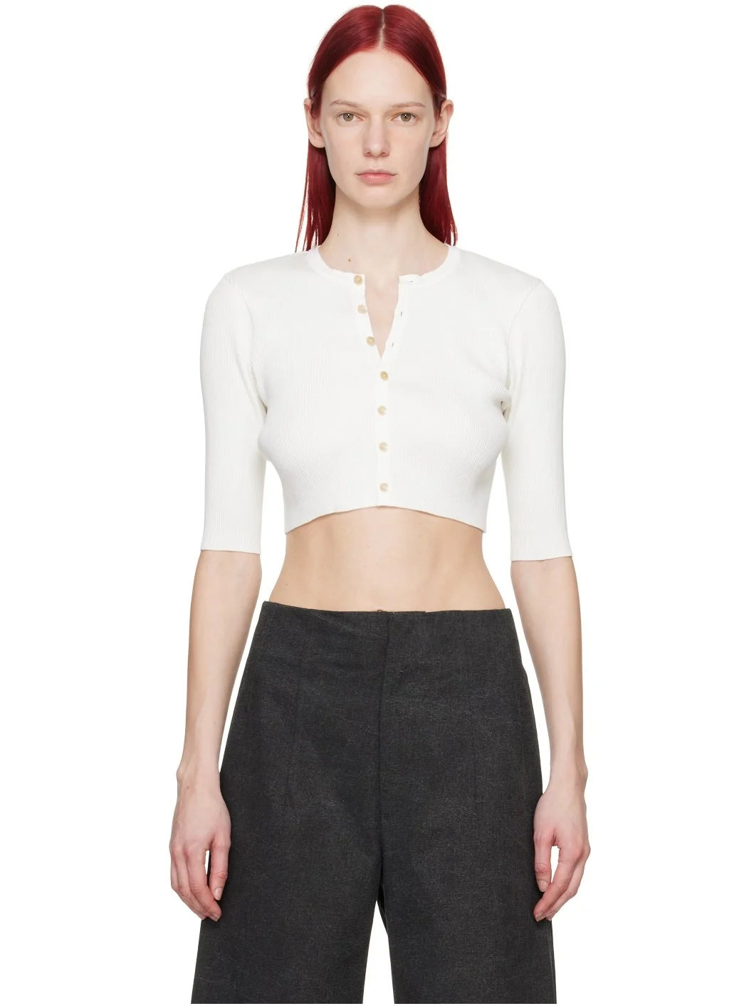 20-gauge rib knit giza cotton cardigan. · Crewneck · Button closure · Cropped hem Supplier color: White 100% cotton. Made in Japan 242484F095003