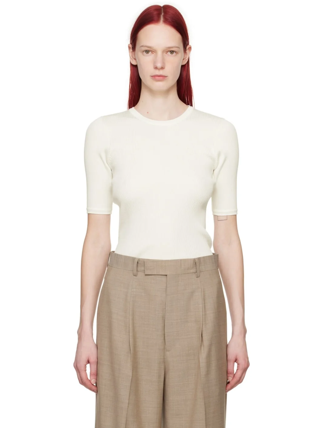 20-gauge rib knit giza cotton T-shirt. · Crewneck · Droptail hem Supplier color: White 100% cotton. Made in Japan 242484F110007