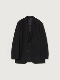 This refined Oxford fabric is densely woven from a blended yarn of wool, cotton, and linen. It features a richly textured surface and a crisp, dry touch with a refreshing feel. A well-balanced structure, soft natural sheen, and depth of character come together to create a fabric that is both sophisticated and effortlessly natural. Its elegant presence with a relaxed sensibility makes it truly distinctive. Relaxed fit / Half lining / Single vent Material WOOL 41% COTTON 38% LINEN 21%