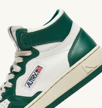 Bold colorways and signature details lend this Medalist high-top sneakers a fresh spin. An essential, ultimately cool accessory for everyday wear, this women's sneakers is crafted from soft leather in a white and green colour block motif. The padded collar and natural rubber sole set the style apart, and offer unbeatable comfort. Finished with a green tread and the Autry logo on the side. SPECIFICATIONS: - Bicolor leather upper - Perforated toe - Flat cotton laces - Label sewn on tongue - Padded ankle collar - Lined in leather and cotton terry - 2 cm leather insole - Rubber sole with contrasting tread - Height of sole: 2,5-3,5 cm. - Fabric dust bag. COMPOSITION: Upper Material: 100% cow leather Lining: 40% pigskin; 50% towel; 10% nylon Outsole: 100% rubber