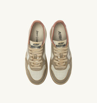 Medalist Super Vintage sneakers are the most authentic expression of Autry. This tennis-inspired design is comfortable and cozy, thanks to the high-quality materials used, while the 1980s vibe is enhanced by artisanal treatments that create a used, irregular, and unique look for each pair. This women’s sneakers is crafted from soft leather with a lived-in look, combining shades of white, pink, and beige. The side insert draws attention to the jacquard logo. The exclusive treatment used to create the vintage look is entirely Made in Italy. SPECIFICATIONS: - Leather upper with a handcrafted used finish. - Micro-perforated toe. - Used-effect cotton laces. - Embroidery label detailing seamed at the tongue. - Padded collar. - Leather and cotton terry lining. - 2 cm-high raised sockliner in leather. - Rubber sole. - Height of sole: 2.5-3.5 cm. - Personalized shoe bag in fabric. SPECIFICATIONS: Upper: 100% leather Lining: 40% leather; 50% cotton terry; 10% nylon Sole: 100% rubber