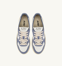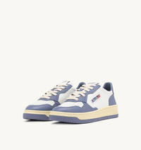 A classic Medalist sneakers featuring bold color combinations that exude strong personality. This women’s style stays true to the spirit of the original Autry, inspired by 1980s tennis, while updating it with streetwear proportions for a fresh experience of style and comfort. Crafted from soft, authentic leather, it features a bold color-block design in white and light blue, paired with a natural rubber sole and light blue tread that complements the rhythm of your steps. SPECIFICATIONS: - Color-block leather upper. - Micro-perforated toe. - Flat laces in cotton. - Embroidery label detailing seamed at the tongue. - Padded collar. - Leather and cotton terry lining. - 2 cm-high raised sockliner in leather. - Sole in rubber with contrast tread. - Height of sole: 2.5-3.5 cm. - Personalized shoe bag in fabric. SPECIFICATIONS: Upper: 100% leather Lining: 40% leather, 50% cotton terry, 10% nylon Sole: 100% rubber