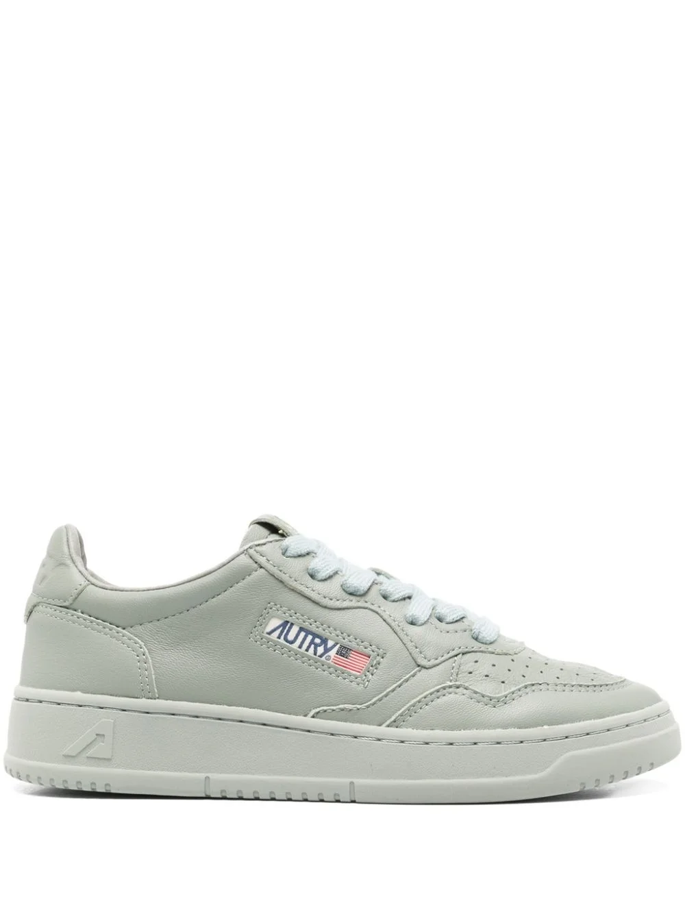 Medalist leather sneakers Highlights - Pastel green - Calf leather - Smooth grain - Perforated toebox - Logo patch at the tongue - Logo patch to the side - Branded heel counter - Front lace-up fastening - Round toe - Branded leather insole - French terry lining - Flat rubber sole Imported Composition Leather 100% SIZE & FIT Measurement HEEL 1.37 in(3.5 cm) Sole height 0.78 in(2 cm)