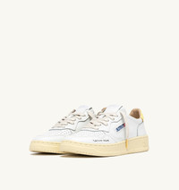 Autry Medalist reimagines 1980s tennis style, blending heritage vibes with a clean, modern aesthetic. Characterized by an essential design, it is the perfect everyday sneaker thanks to its timeless and versatile mood, ensuring everyday comfort while combining classic style and functionality. These women’s sneakers are crafted from soft, natural-looking white leather, finished with micro-perforations on the toe for excellent breathability. The yellow leather heel tab, the jacquard side detail, and the stitched label on the tongue are customized with the Autry logo, while the “Floating dreams” side lettering print further defines the look. SPECIFICATIONS: - Upper in leather. - Micro-perforated toe. - Flat cotton laces. - Embroidery label detailing seamed at the tongue. - Padded ankle collar. - Leather and cotton terry lining. - 2 cm-high raised sockliner in leather. - Sole in rubber. - Height of sole: 2.5-3.5 cm. - Personalized shoe bag in fabric. COMPOSITION: Upper: 100% leather Lining: 40% leather, 50% cotton terry, 10% nylon Sole: 100% rubber