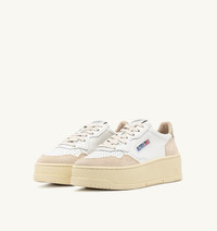 A new interpretation of the authentic Autry Medalist, elevated by a platform sole that adds extra flair to the look. A perfect blend of 1980s tennis inspiration and contemporary attitude, this sneakers stands out with unexpected volume and the signature logo detail on the heel. This women’s sneakers features all the hallmark details of the style: a soft white leather upper with a platinum color leather logo heel tab, micro-perforations on the toe for added breathability, and the iconic Autry logo on the side. The chunky rubber sole elongates the silhouette and confidently supports movements. SPECIFICATIONS: - Upper in leather. - Micro-perforated toe. - Flat laces in cotton. - Embroidery label detailing seamed at the tongue. - Padded collar. - Leather and cotton terry lining. - 2 cm-high raised sockliner in leather. - Platform sole in rubber. - Height of sole: 4 cm. - Personalized shoe bag in fabric. SPECIFICATIONS: Upper: 80% leather 20% suede Lining: 40% leather, 50% cotton terry, 10% nylon Sole: 100% rubber