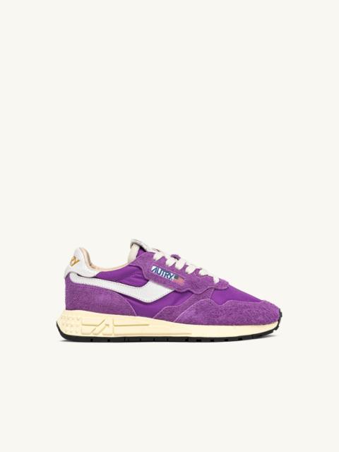 Reelwind sneakers blend Autry’s signature style with elements inspired by the world of running. Featuring a sleek silhouette and an ’80s-inspired retro design, they offer lightness, flexibility, and optimal grip. The men’s Reelwind sneaker explores street-driven dynamism with a paneled construction combining tone-on-tone blue nylon and suede with white crackle-leather inserts. The mix of colors and textures adds contrast to the clean, lightweight profile, set on a white Phylon running sole that provides flexibility and grip with every step. Notable details include the 3D star pattern and the distinctive A-arrow, paying tribute to the brand's spirit. SPECIFICATIONS: - Upper in nylon, suede and leather. - Flat cotton laces. - Label detailing at tongue. - Padded ankle collar. - Nylon, leather and cotton terry lining. - 2cm-high raised sockliner in leather. - Running sole. - Height of sole: 2.5-3.5 cm. - Personalized shoe bag in fabric. COMPOSITION: Upper: 60% nylon, 40% leather Lining: 40% leather, 50% cotton terry, 10% nylon Sole: 60% Phylon, 40% rubber