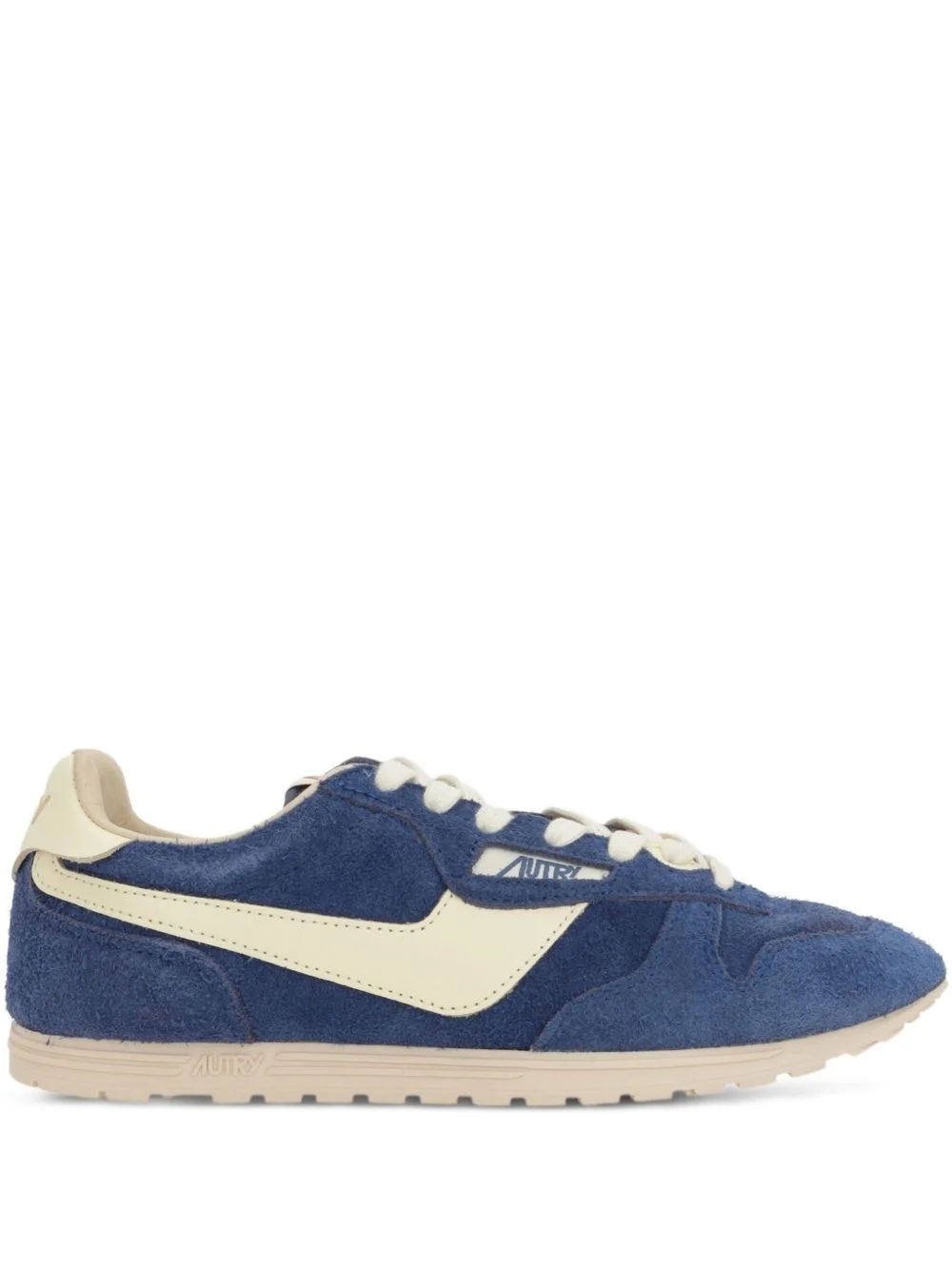 leather sneakers Highlights - Navy blue - Front lace-up fastening - Ridged rubber sole - Contrasting heel counter - Logo print to the side Imported Composition Outer: Calf Leather 100%, Calf Suede 100% Lining: Fabric 100% Sole: Rubber 100%