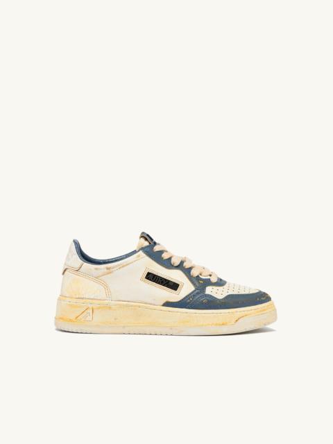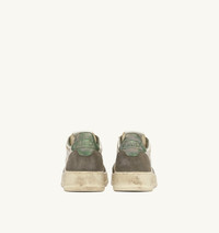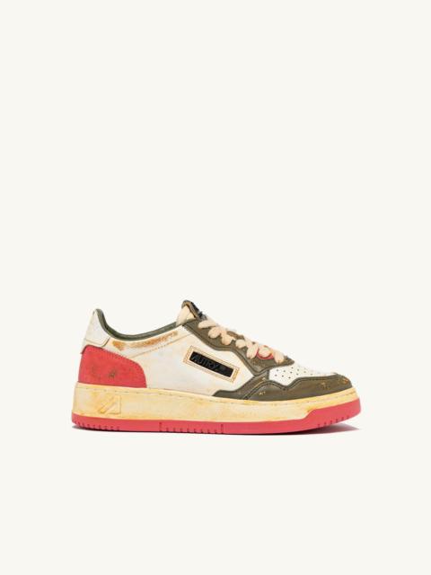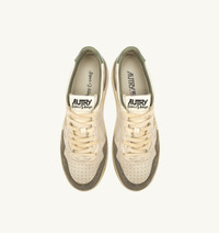 Italian artisanal expertise and Autry creativity come together to emphasize the charm of the Medalist Super Vintage style. Each style stands out for bold distressed elements which give this women's athletic shoe a truly unique look. Crafted from white leather and finished with green suede inserts and a green metalized leather back patch with embossed logo. The mud-effect finish enhances both the upper and the sole. Padded ankle collar, micro-perforated toe and Autry logo detailing at side. SPECIFICATIONS: - Upper in suede and leather. - Micro-perforated toe. - Flat cotton laces. - Embroidery label detailing seamed at the tongue. - Padded collar. - Pigskin, terry and nylon lining. - 2-cm raised sockliner in leather. - Rubber sole. - Height of sole: 2.5-3.5 cm. - Personalize shoe bag in fabric. COMPOSITION: Upper: 70% leather, 30% suede Lining: 40% leather; 50% cotton terry; 10% nylon Sole: 100% rubber