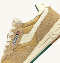 Reelwind sneakers offer the technical edge of a performance shoe with the unmistakable style of the Autry aesthetic. This women's athletic shoe is crafted from beige nylon and is reinforced by color matching suede inserts that create a dynamic design. Details white pony hair effect bring a unique touch of originality. Lightweight and streamlined, it is completed by a rubber and Phylon running sole that softens the impact on the road or on the pitch. SPECIFICATIONS: - Suede and nylon upper. - Flat cotton laces. - Embroidery label detailing seamed at the tongue. - Padded ankle collar. - Leather, terry and nylon lining. - 2cm-high raised sockliner in leather. - Rubber sole. - Height of sole: 2.5-3.5 cm. - Personalized shoe bag in fabric. COMPOSITION: Upper: 60% nylon, 40% leather Lining: 40% leather, 50% cotton terry, 10% nylon Sole: 60% Phylon, 40% rubber
