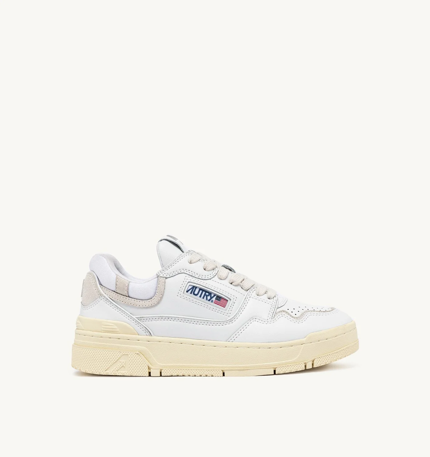 Reimagining the classic Medalist design in new volumes, the CLC sneakers stands for "Counter-Lock-Cord" – an ankle support seen in basketball shoes. This women's sneakers is crafted from white leather, with bicolor suede panels and tonal laces. The padded mesh collar ensures stability, while the elevated rubber sole with textured tread adds a gritty, urban appeal to the model, destined to be the perfect finishing touch to your daily wardrobe.. SPECIFICATIONS: - Leather, suede and mesh upper. - Perforated toe. - Flat cotton laces. - Label sewn on tongue. - Padded ankle collar. - Lined in leather and cotton terry. - 2 cm leather insole. - Rubber sole. - Height of sole: 3.4-4 cm. - Fabric dust bag. COMPOSITIONS: Upper: 60% leather, 15% mesh, 25% suede Lining: 50% mesh, 50% cotton terry Sole: 100% rubber