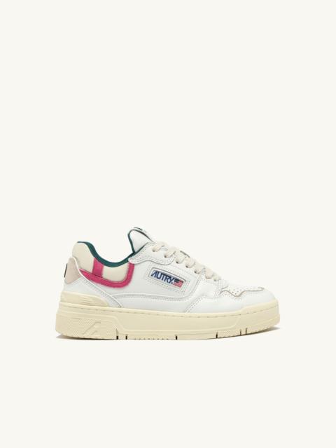 A reinterpretation of the classic Medalist with extra volume, the CLC acronym stands for "counter-lock-cord," the typical basketball ankle support that inspired this design. Urban style and ultra-modern vibes make it a perfect sneaker for any setting. This women’s model is made from white leather with purple suede heel trims. It features a bold, cushioned shape, a padded mesh ankle collar, and internal support that adds extra stability to the heel. The standout feature is the high sole in ivory rubber with raised tread, emphasizing the street energy of the design. SPECIFICATIONS: - Leather, suede and micro-mesh upper. - Micro-perforated toe. - Flat cotton laces. - Embroidery label detailing seamed at the tongue. - Padded ankle collar. - Mesh and cotton terry lining. - 2 cm-high raised sockliner in leather. - Sole in rubber. - Height of sole: 3.4-4 cm. - Personalized shoe bag in fabric. COMPOSITION: Upper: 55% leather, 30% suede, 15% mesh (100% PL) Lining: 50% mesh, 50% terry Sole: 100% rubber