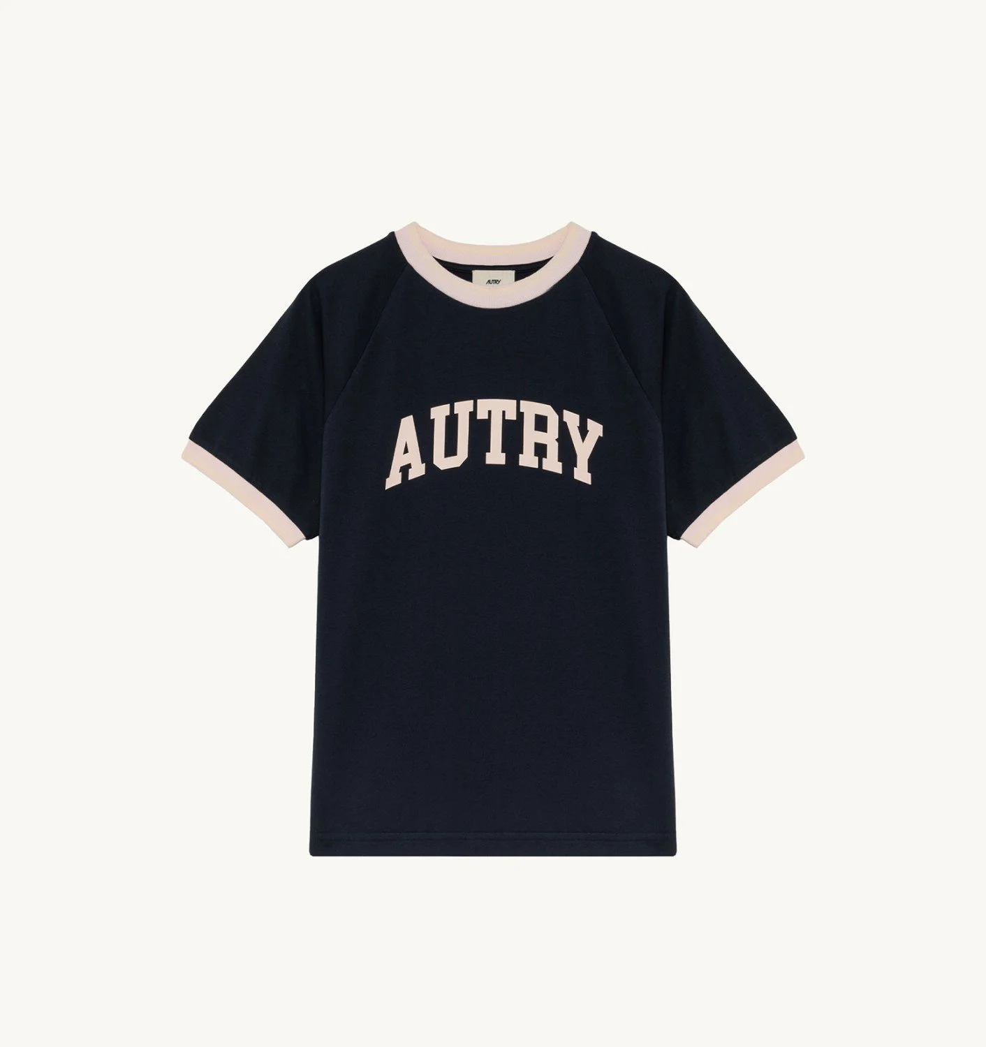 DETAILS: - Main fabric jersey 100% cotton - Crewneck with raglan sleeves - Striped rib collar and cuffs - Autry college logo water print - Raglan sleeves - Slim fit The model is 1.75 m tall and wears size M.