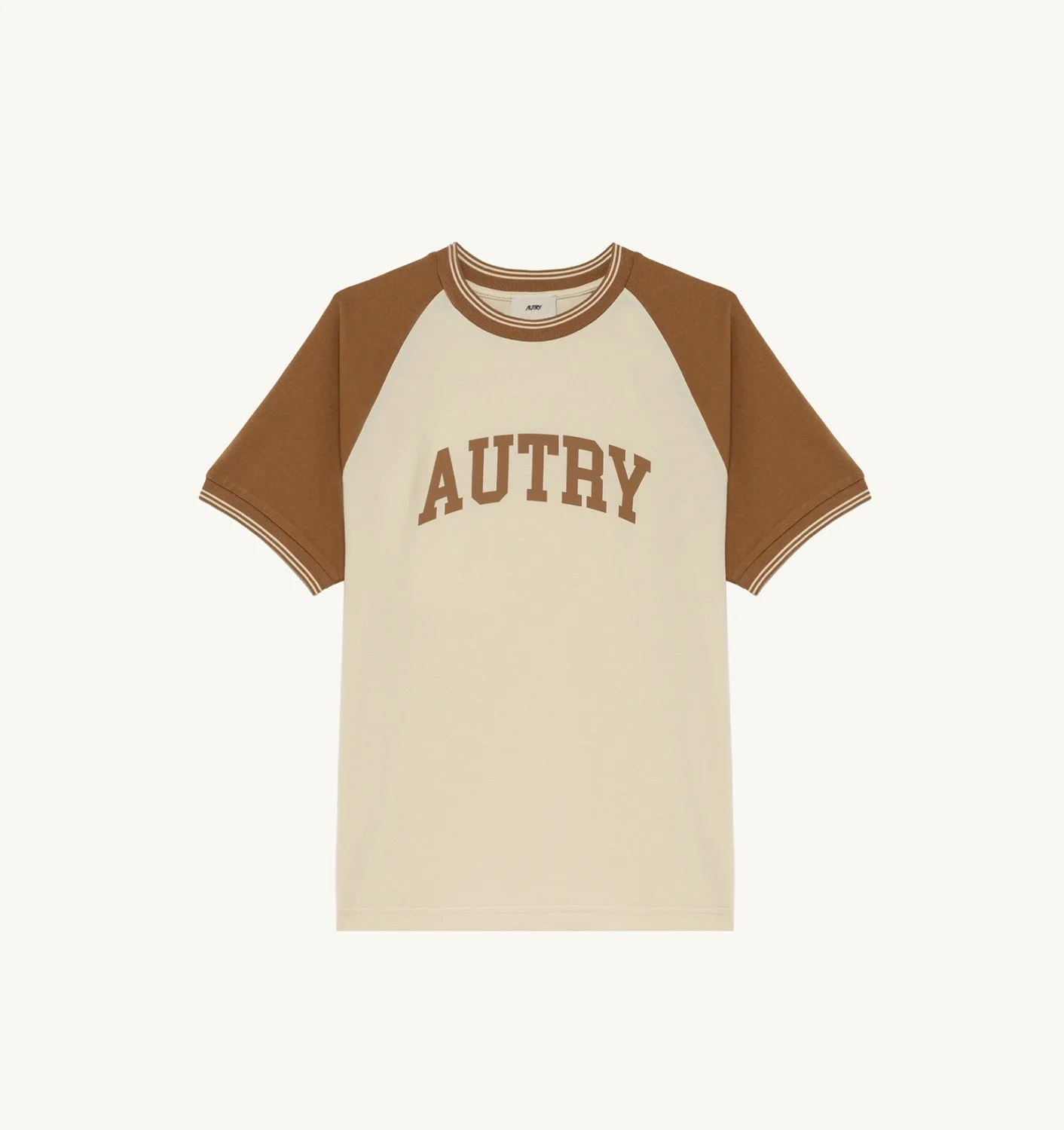 DETAILS: - Main fabric jersey 100% cotton - Crewneck with raglan sleeves - Striped rib collar and cuffs - Autry college logo water print - Raglan sleeves - Slim fit The model is 1.75 m tall and wears size M.