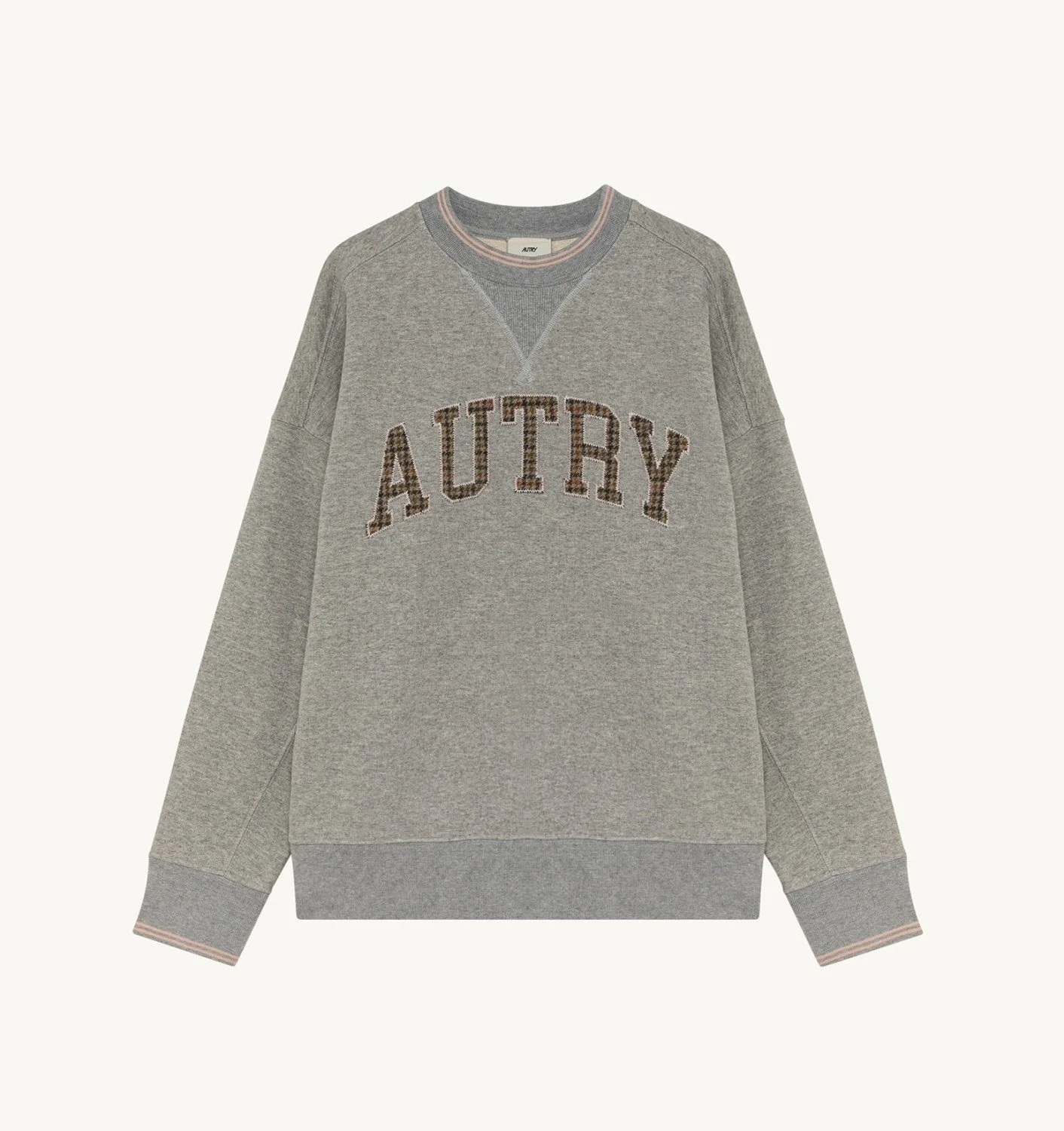DETAILS: - 100% cotton - Crewneck - Striped ribs on neck and cuffs - Necktape finishing - Autry college check wool applied with zig zag - Loose fit The model is 1.75 m tall and wears size M.