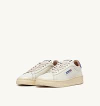 Simple and versatile, Dallas Low women's sneakers are the must-have piece for those who love a sporty and metropolitan look. The low-top profile, sturdy and functional, is interpreted in ivory white with a logo heel tab in light blue nubuck leather. The upper is made from soft leather with a natural look, featuring a logo insert on the side, and rests on a high rubber sole in a slightly darker shade—a detail that gives it an authentic, vintage-inspired look. SPECIFICATIONS: - Leather and nubuck leather upper. - Smooth toe. - Flat laces in cotton. - Embroidery label detailing seamed at the tongue. - Padded collar. - Leather and cotton terry lining. - 2 cm-high raised sockliner in leather. - Rubber sole. - Height of sole: 2.5-3.5 cm. - Personalized shoe bag in fabric. SPECIFICATIONS: Upper: 95% leather, 5% nubuck leather Lining: 40% leather, 50% cotton terry, 10% nylon Sole: 100% rubber