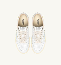 Autry Medalist reimagines 1980s tennis style, blending heritage vibes with a clean, modern aesthetic. Characterized by an essential design, it is the perfect everyday sneaker thanks to its timeless and versatile mood, ensuring everyday comfort while combining classic style and functionality. This sneaker is made of soft white leather and stands out for its floral embroidery and “crystal” applications that create an original effect with strong personality. A model that celebrates sophisticated beauty, a mix of elegance and exclusivity reinterpreted with a unique contemporary appeal, in a perfect balance between tradition and innovation. The details on the outer side, on the heel, and on the tongue are customized with the Autry logo for an extra touch of authenticity, while the comfortable rubber sole sets the rhythm of your steps. SPECIFICATIONS: - Upper in leather. - Micro-perforated toe. - Flat cotton laces. - Embroidery label detailing seamed at the tongue. - Padded ankle collar. - Leather and cotton terry lining. - 2 cm-high raised sockliner in leather. - Sole in rubber. - Height of sole: 2.5-3.5 cm. - Personalized shoe bag in fabric. COMPOSITION: Upper: 100% leather Lining: 40% leather, 50% cotton terry, 10% nylon Sole: 100% rubber