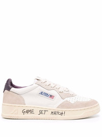 Game Set Match sneakers beige leather two-tone detail perforated detailing logo patch to the side logo patch at the tongue round toe front lace-up fastening branded insole flat rubber sole Imported Composition Sole: Rubber 100% Outer: Calf Leather 100% Lining: Calf Leather 100% SIZE & FIT Measurement HEEL 1.18 in(3 cm) Sole height 0.78 in(2 cm)