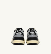 Hyperway: the Autry sneaker inspired by the future. Running style meets urban inspiration with the new Action Cush technology for maximum comfort. The upper stands out for the combined use of mesh, light and breathable for comfort, and silver-tone inserts introducing a modern style detail. This style is finished with black accents that add a pop of contrast color. The sole features 'Action Cush' technology, delivering enhanced cushioning and optimal comfort for a uniquely smooth and enjoyable movement experience. The TPR stabilizer, strategically placed, provides support and stability. This style stands out for its refined nylon tongue offering a sleek, functional design, along with the embossed leather back counter and jacquard fabric tag and logo on the side, which add an extra touch of authenticity. SPECIFICATIONS: - PU leather, leather and mesh upper. - Mesh toe. - Flat cotton laces. - Logo label detailing seamed at the tongue. - Padded ankle collar in mesh. - Cotton terry lining. - 15 mm high raised mesh fabric-lined sockliner. - PI sole. - Height of sole: 3.5 cm. - Personalized shoe bag in fabric. COMPOSITION: Upper: 45% synthetic material (100% PU), 40% mesh, 5% leather, 10% nylon Lining: 50% cotton terry, 10% nylon, 10% leather, 30% mesh Sole: 40% phylon, 40% rubber, 20% TPU