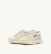 Hyperway: the Autry sneakers inspired by the future. Running style meets urban inspiration with the new Action Cush technology for maximum comfort. The upper stands out for its combination of two materials. The lightweight, breathable mesh ensures comfort, while the goatskin—known for its softness and durability—adds durability and a touch of sophistication. This combination of materials creates a monochromatic effect, giving the shoe a contemporary look that is perfect for those seeking a minimalist design. The sole features 'Action Cush' technology, delivering enhanced cushioning and optimal comfort for a uniquely smooth and enjoyable movement experience. The TPR stabilizer, strategically placed, provides support and stability. The nylon tongue adds a functional yet refined touch, while the embossed leather back counter, the jacquard fabric label at the tongue, and the side logo bring an extra layer of authenticity. SPECIFICATIONS: - Goatskin and mesh upper. - Mesh toe. - Flat cotton laces. - Jacquard logo label. - Padded collar in mesh. - Cotton terry lining. - 1.5 mm high mesh-lined sockliner. - PI sole. - Height of sole: 3.5 cm. - Personalized dust bag in nylon. COMPOSITIONS: Upper: 80%, 20% fabric (100% polyester) Lining: 50% cotton terry, 10% nylon, 5% leather, 35% mesh Sole: 40% Phylon, 20% TPU, 40% rubber