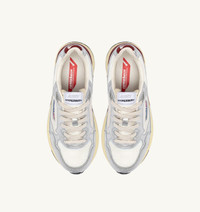 Hyperway: the Autry sneakers inspired by the future. Running style meets urban inspiration with the new Action Cush technology for maximum comfort. The upper stands out for its combination of three materials. The lightweight, breathable mesh ensures comfort, while the goatskin—known for its softness and durability—adds durability and a touch of sophistication. The addition of laminated leather brings a sophisticated, modern touch to the design. The sole features 'Action Cush' technology, delivering enhanced cushioning and optimal comfort for a uniquely smooth and enjoyable movement experience. The TPR stabilizer, strategically placed, provides support and stability. The nylon tongue adds a functional yet refined touch, while the embossed leather back counter, the jacquard fabric label at the tongue, and the side logo bring an extra layer of authenticity. SPECIFICATIONS: - Goatskin, laminated leather and mesh upper. - Mesh toe. - Flat cotton laces. - Jacquard logo label. - Padded collar in mesh. - Cotton terry lining. - 1.5 mm high mesh-lined sockliner. - PI sole. - Height of sole: 3.5 cm. - Personalized dust bag in nylon. COMPOSITIONS: Upper: 75% leather , 25% fabric (100% polyester) Lining: 50% cotton terry, 10% nylon, 5% leather, 35% mesh Sole: 40% Phylon, 20% TPU, 40% rubber