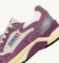 Hyperway: the Autry sneaker inspired by the future. Running style meets urban inspiration with the new Action Cush technology for maximum comfort. The upper stands out for its combination of two materials. Mesh, lightweight and breathable, ensures comfort while the suede, completes the design with a sophisticated finish, evoking a vintage aesthetic. The sole features 'Action Cush' technology, delivering enhanced cushioning and optimal comfort for a uniquely smooth and enjoyable movement experience. The TPR stabilizer, strategically placed, provides support and stability. This style stands out for its refined nylon tongue offering a sleek, functional design, along with the embossed leather back counter and jacquard fabric tag and logo on the side, which add an extra touch of authenticity. SPECIFICATIONS: - Mesh and suede upper. - Mesh toe. - Flat cotton laces. - Logo label detailing seamed at the tongue. - Padded ankle collar in mesh. - Cotton terry lining. - 15 mm high raised mesh fabric-lined sockliner. - PI sole. - Height of sole: 3.5 cm. - Personalized shoe bag in fabric. COMPOSITION: Upper: 70% suede, 10% nylon, 15% mesh (100% PL), 5% synthetic (100% PU) Lining: 50% cotton terry, 10% nylon, 10% leather, 30% mesh Sole: 40% phylon, 40% rubber, 20% TPU